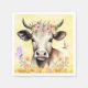 De belles serviettes en papier d'aquarelle de vache, avec une vache avec des fleurs, papillon et libellule, sur un arrière - plan jaune. Très agréable pour le printemps, l'été ou quelqu'un qui aime les vaches.