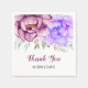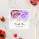 Serviettes en papier mariage à fleurs d'aquarelle violette et bleue. Un joli design mariage qui comprend des fleurs d'aquarelle dans les tons violet et bleu et feuille. L'expression "Merci" est dans la typographie de script.