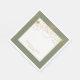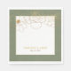 Ces serviettes de mariage simples et élégantes ont un arrière - plan vert sauge avec des fleurs dorées d'or et les noms des mariées et mariées et la date du mariage.