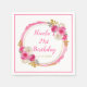 Belle serviette de fête d'anniversaire avec un cadre de parties scintillant rose et or chaud avec des arrangements floraux. Les mots peuvent être changés en fonction de vos propres détails ou exigences