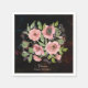 Serviette En Papier Fleurs roses aquarelle sur fond noir