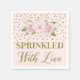 Personnalisable parsemé de serviettes d'amour à saupoudrer de bébé avec des fleurs d'aquarelle rose pâle, des confettis et du texte or.