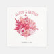 Fleurs roses et rouges et feuilles de palmier été mariage papier serviette qui comprend un bouquet de dalias aquarelle, feuilles rose et pampas herbe dans les tons roses.