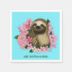 Un mignon paresseux assis au milieu de fleurs roses sur un fond bleu