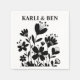 Il s'agit d'une serviette charmante et audacieuse avec un amas de fleurs fantaisistes. Rendu en noir solide contre un arrière - plan blanc propre. Les fleurs sont très stylisées avec une variété ludique de formes et de tailles : certaines ont des pétales simples et arrondis, tandis que d'autres sont plus en forme de cloche. Beaucoup présentent des étamines longues et proéminentes avec de petits points au bout, ajoutant à leur caractère fantaisiste. La composition comprend différentes formes florales, allant des formes classiques de marguerite à une fleur unique, pointillée, semblable à un pot de graines sur la droite. Les fleurs, leurs simples tiges et leurs feuilles proviennent d'un seul endroit de terrain, créant une sensation de petit jardin enchanté. L'ensemble est moderne, propre et joliment créatif.
