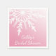 Personnalisez le fabuleux Flocon de neige blanc sur les serviettes en papier de Fête des mariées d'hiver rose avec le nom de la mariée à être. Ces élégantes serviettes jetables à thème wedding shower d'hiver personnalisées présentent un design complexe de flocon blanc avec un arrière - plan rose dégradé.