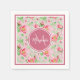 Serviettes en papier rose et vert fleuri aux fleurs de pomme. Personnalisez ce design floral printanier en ajoutant votre nom et votre monogramme initial à l'insigne octogone rose profond. Cela fait partie de la collection de Rose Monogramme Apple Blossom Floral Rapture.