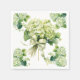 Party paper napkins are shown in the white cocktail size with a watercolor print of lovely green hydrangeas.