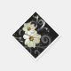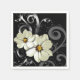 Ces belles serviettes à cocktails florales sont décorées dans un style élégant et tendance, à la mode, de jolies fleurs blanches dans un tourbillon de curling fleuris sur un arrière - plan noir de jet. Utilisez le bouton CUSTOMISER IT ci-dessus pour redimensionner l'illustration ou ajouter du texte. "Floral Orné" par Cheryl Daniels © 2014. Ce design est également disponible sur les invitations, les biscuits, les coussins, les serviettes, les autocollants de faveur et plus encore. Pour toute question ou demande personnalisée, contactez : Cheryl@CherylDanielsArt.com.