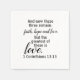 serviette blanche avec le verset biblique "Et maintenant ces trois-là restent : la foi, l'espérance et l'amour. Mais le plus grand d'entre eux est l'amour."1 Corinthiens 13:13