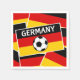 Le drapeau de l'Allemagne, tricolore, aux couleurs nationales de l'Allemagne : noir, rouge et or. Au milieu il y a une photo d'un noir et blanc, ballon de football / football. Le texte, en blanc, dit l'Allemagne.
