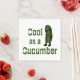 Concombre vert cool amusant portant des lunettes noires, un gilet noir et des bottes marron. Il a les bras croisés, un sourcil levé et un sourire malicieux. Sur le côté et en dessous se trouve la phrase "frais comme un concombre" en texte vert.