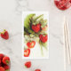 fraise vintage - illustration graphique montrant quelques fraises mûres et non mûres avec feuilles verts. Il a une agréable sensation de début d'été. Vous pouvez customiser cet article avec votre monogramme/texte/logo Vendu par ensemble de 50 serviettes. Idéal pour les fêtes du début de l'été, comme les mariages rustiques/agricoles/vergers.