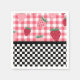 Les serviettes de la fête en papier du printemps et de l'été sont équipées de la moitié supérieure des fraises rouges et roses sur en vichy rose et de la moitié inférieure du damier noir et blanc.
