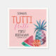 Cette serviette de fête d'anniversaire est un complément parfait à la fête d'anniversaire de votre petite fille ! "Nos petits fruits Tutti en tournent un" est accentué par des fruits aquarellés tendance.