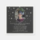 Fun Fact Napkins à propos des serviettes Graduate Photo Graduation Party Napkins. Arrière - plan en damier gris foncé avec étoiles blanches et une photo personnalisée dans un cadre ovale. Ajoutez une photo de diplômé et des faits amusants sur le diplômé et faites des faits amusants serviettes pour la célébration de la remise des diplômes.