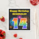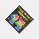 Ce design amusant et dynamique de serviette en papier présente un motif coloré inspiré par des feux d'artifice festifs, ainsi que le numéro "14" avec un arc-en-ciel multicolore comme un motif dégradé, sur un arrière - plan de couleur noire. Il comporte également un nom et un message d'événement personnalisables. Des serviettes en papier comme celle-ci pourraient peut-être être utilisées lors d’une fête organisée pour célébrer le quatorzième anniversaire de quelqu’un. [~Z0000326]