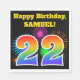 Ce design amusant et dynamique de serviette en papier présente un motif coloré inspiré par les feux d'artifice célébré, ainsi que le numéro "22" avec un arc-en-ciel multicolore comme un motif dégradé, sur un arrière - plan de couleur noire. Il comporte également un nom et un message d'événement personnalisés. Des serviettes en papier comme celle-ci peuvent être utilisées lors d’une fête d’anniversaire pour célébrer le vingt-deuxième anniversaire de quelqu’un. [~Z0000326]