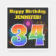 Ce design amusant et dynamique de serviette en papier présente un motif coloré inspiré par les feux d'artifice, ainsi que le numéro "34" avec un arc-en-ciel multicolore comme un motif dégradé, sur un arrière - plan de couleur noire. Il comporte également un nom et un message d'événement personnalisés. Des serviettes en papier comme celle-ci pourraient être utilisées lors d’une fête organisée pour célébrer le trente-quatrième anniversaire de quelqu’un. [~Z0000326]