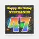 Ce design amusant et dynamique de serviette en papier présente un motif coloré inspiré par les feux d'artifice, ainsi que le numéro "47" avec un arc-en-ciel multicolore comme un motif dégradé, sur un arrière - plan de couleur noire. Il comporte également un nom et un message d'événement personnalisables. Des serviettes en papier comme celle-ci pourraient peut-être être utilisées lors d’une fête organisée pour célébrer le quarante-septième anniversaire de quelqu’un. [~Z0000326]