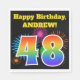 Ce design amusant et dynamique de serviette en papier présente un motif coloré inspiré par les feux d'artifice, ainsi que le numéro "48" avec un motif multicolore en dégradé d'inspiration arc-en-ciel, sur un arrière - plan de couleur noire. Il comporte également un nom et un message d'événement personnalisables. Des serviettes en papier comme celle-ci pourraient être utilisées lors d’une fête organisée pour célébrer le quarante-huitième anniversaire de quelqu’un. [~Z0000326]