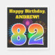 Ce design amusant et dynamique de serviette en papier présente un motif coloré inspiré par les feux d'artifice, ainsi que le numéro "82" avec un arc-en-ciel multicolore comme un motif dégradé, sur un arrière - plan de couleur noire. Il comporte également un nom et un message d'événement personnalisables. Des serviettes en papier comme celle-ci pourraient être utilisées lors d’une fête d’anniversaire pour célébrer le quatre-vingt-deuxième anniversaire de quelqu’un. [~Z0000326]