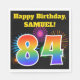 Ce design amusant et dynamique de serviette en papier présente un motif coloré inspiré par des feux d'artifice célèbres, ainsi que le numéro "84" avec un motif dégradé multicolore inspiré de l'arc-en-ciel, sur un arrière - plan de couleur noire. Il comporte également un nom et un message d'événement personnalisés. Des serviettes en papier comme celle-ci pourraient être utilisées lors d’une fête d’anniversaire pour célébrer le quatre-vingt-quatrième anniversaire de quelqu’un. [~Z0000326]