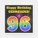 Ce design amusant et dynamique de serviette en papier présente un motif coloré inspiré par les feux d'artifice, ainsi que le numéro "96" avec un arc-en-ciel multicolore comme un motif dégradé, sur un arrière - plan de couleur noire. Il comporte également un nom et un message d'événement personnalisés. Des serviettes en papier comme celle-ci pourraient être utilisées lors d’une fête d’anniversaire pour célébrer le quatre-vingt-seizième anniversaire de quelqu’un. [~Z0000326]