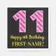 Serviette En Papier Fun Pink Stripes "11"; Joyeux 11e anniversaire; No