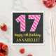 Ce design amusant sur le thème de l'anniversaire de la serviette en papier dispose d'un grand nombre de "17", avec un motif de rayures rose clair et rose foncé. Il comporte également le message "Joyeux 17e anniversaire", et un nom personnalisable. L'arrière - plan est noir de couleur. Des serviettes en papier sur le thème de l’anniversaire comme celle-ci pourraient être utilisées lors d’une fête célébrant le 17e anniversaire de quelqu’un. [~Z0000380]
