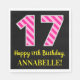 Serviette En Papier Fun Pink Stripes "17"; Joyeux 17e anniversaire; No