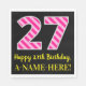 Ce design amusant sur le thème de l'anniversaire de la serviette en papier dispose d'un grand nombre de "27", avec un motif de rayures rose clair et rose foncé. Il comporte également le message "Joyeux 27e anniversaire", et un nom personnalisé. L'arrière - plan est noir de couleur. Des serviettes en papier sur le thème de l’anniversaire amusantes et personnalisées comme celle-ci pourraient être utilisées à la fête du 27e anniversaire de quelqu’un. [~Z0000380]