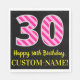 Ce design amusant sur le thème de l'anniversaire de la serviette en papier dispose d'un grand nombre "30", avec un motif de rayures rose clair et rose foncé. Il comporte également le message "Joyeux 30e anniversaire", et un nom personnalisable. L'arrière - plan est noir de couleur. Des serviettes en papier personnalisées et amusantes comme celle-ci pourraient être utilisées lors d’une fête organisée pour célébrer le trentième anniversaire de quelqu’un. [~Z0000380]