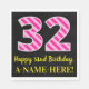 Cette conception amusante de serviette en papier sur le thème de l'anniversaire comporte un grand numéro "32" avec un motif rose clair et rose foncé rayures, avec le message "Happy 32nd Birthday,", et un nom personnalisé. L'arrière - plan est noir de couleur. Des serviettes en papier sur le thème de l’anniversaire comme celle-ci pourraient être amusantes à utiliser lors d’une fête organisée pour célébrer le 32e anniversaire de quelqu’un. [~Z0000380]