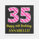 Cette conception amusante de serviette en papier sur le thème de l'anniversaire comporte un grand nombre de "35" avec un motif rose clair et rose foncé rayures, avec le message "Happy 35th Birthday,", et un nom personnalisable. L'arrière - plan est noir de couleur. Des serviettes en papier sur le thème de l’anniversaire comme celle-ci pourraient être utilisées lors d’une fête célébrant le trente-cinquième anniversaire de quelqu’un. [~Z0000380]
