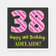 Cette conception amusante de serviette en papier sur le thème de l'anniversaire comporte un grand numéro "38" avec un motif rose foncé et rose clair rayures, avec le message "Happy 38th Birthday,", et un nom personnalisé. L'arrière - plan est noir de couleur. Des serviettes en papier sur le thème de l’anniversaire comme celle-ci pourraient être amusantes à utiliser lors d’une fête organisée pour célébrer le 38e anniversaire de quelqu’un. [~Z0000380]