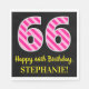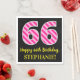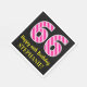 Cette conception amusante de serviette en papier sur le thème de l'anniversaire comporte un grand nombre de "66" avec un motif rose clair et rose foncé rayures, avec le message "Happy 66th Birthday,", et un nom modifiable. L'arrière - plan est noir de couleur. Des serviettes en papier sur le thème de l’anniversaire comme celle-ci pourraient être utilisées lors d’une fête célébrant le 66e anniversaire de quelqu’un. [~Z0000380]