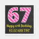 Ce design amusant sur le thème de l'anniversaire de la serviette en papier dispose d'un grand nombre de "67", avec un motif de rayures rose foncé et rose clair. Il comporte également le message "Joyeux 67e anniversaire", et un nom personnalisé. L'arrière - plan est noir de couleur. Des serviettes en papier customisées et amusantes comme celle-ci pourraient être utilisées lors d’une célébration pour célébrer le soixante-septième anniversaire de quelqu’un. [~Z0000380]