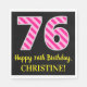 Serviette En Papier Fun Pink Stripes "76"; Joyeux 76e anniversaire; No
