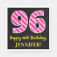 Ce design amusant sur le thème de l'anniversaire de la serviette en papier dispose d'un grand numéro "96", avec un motif de rayures rose foncé et rose clair. Il comporte également le message "Joyeux 96ème anniversaire", et un nom personnalisé. L'arrière - plan est noir de couleur. Des serviettes en papier personnalisées et amusantes comme celle-ci pourraient être utilisées lors d’une fête d’anniversaire pour célébrer le 96e anniversaire de quelqu’un. [~Z0000380]