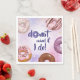Un assortiment de beignets disposés le long des bords de cette serviette qui réunirait une douche de nuptiale sur le thème des beignets, une fête de fiançailles, un dîner de répétition, ou même un mur ou un bar de beignets à un mariage. Le texte est modifiable et le "O" dans "beignet" est remplacé par un beignet rayé violet. Le fond est un lavis aquarelle multi-tons avec des éclaboussures de peinture aquarelle et des paillettes dorées fausses. Disponible avec des produits assortis.