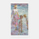 A mother, sunhat gently tilted, guides two children through a shimmering tidepool of color and light. They bend in curiosity, searching for sea-treasures beneath the ripples — shells, stones, maybe memories. The scene captures the innocence of childhood and the quiet strength of maternal presence. Waves glisten in hues of turquoise and lavender, while soft shadows dance in sun-washed sand. There's movement, but also stillness — like a moment suspended in warm salt air.