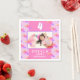 Cute rose Colorful Gecko Lizard Photo de fête d'anniversaire de l'enfant Naples. Motif gecko mignon sur rose. Ajoutez votre photo préférée et créez des serviettes de fête pour une fille.
