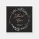 Ces serviettes de mariage élégantes et tendance présentent une forme géométrique en or faux rose entourée de belles branches vertes, avec une typographie stylisée en or faux rose qui dit "merci" sur un arrière - plan noir foncé.