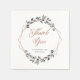 Ces serviettes de mariage élégantes et tendance présentent une forme géométrique en or faux rose entourée de magnifiques branches vertes, avec une typographie stylisée en or faux rose qui dit "merci".