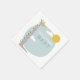 serviettes de baby shower illustrant une girafe avec ciel, nuages et soleil. Les couleurs et le design sont modernes.
