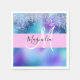 La parties scintillant de sirène holographique en verre scintille le nom monogramme et les serviettes initiales. Votre nom personnalisé et votre monogramme sont écrits dans un élégant script écrit à la main avec un arrière - plan rose clair. Vous pouvez modifier la couleur du texte, le style et la taille de police à l'aide de l'option personnaliser.