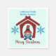 Cette serviette en papier est agrémentée d'une illustration graphique sur le thème des fêtes représentant un gnome debout dans la porte d'un cabine scandinave rouge, de flocons de neige bleus stylisés et d'un texte facile à personnaliser. Ce design est en harmonie avec mes autres objets de gnome de Noël.