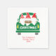 Serviettes personnalisées de fête de Noël avec trois adorables gnomes dans un camion vert. Personnalisé avec votre nom et l'année