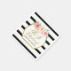 Des serviettes pour la fête du 40e anniversaire avec rayures noires et blanches, texte or et fleurs d'aquarelle rose.